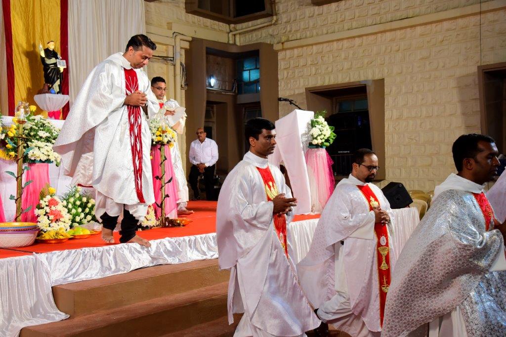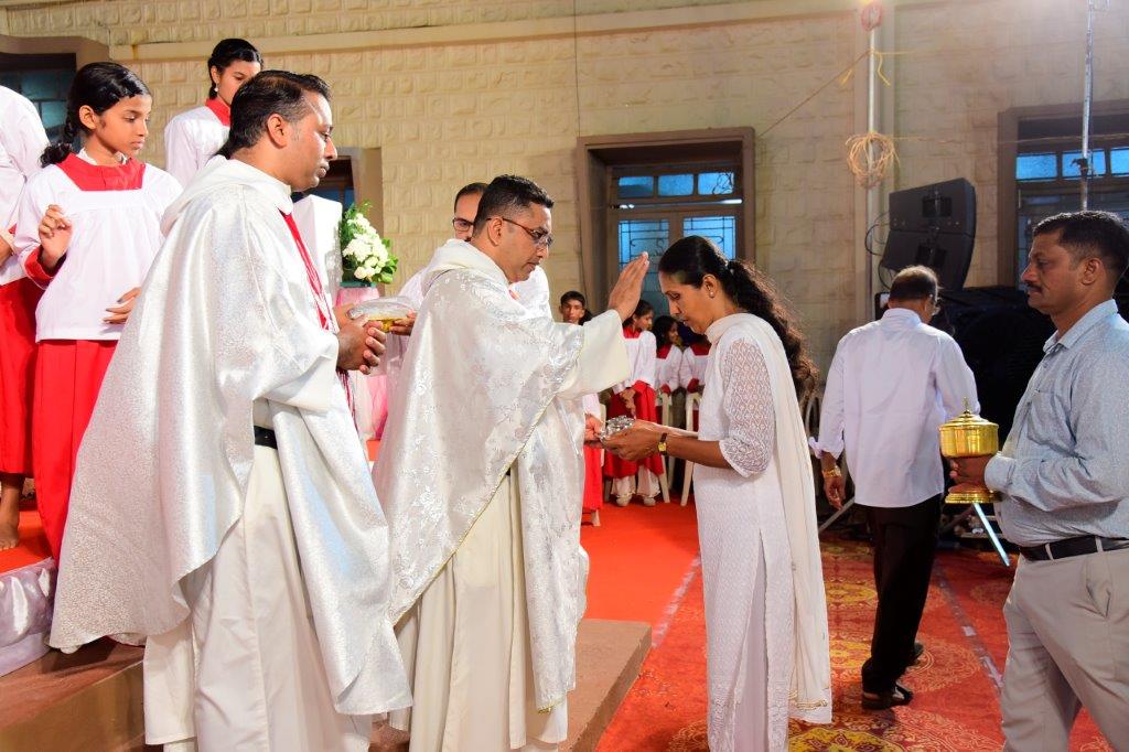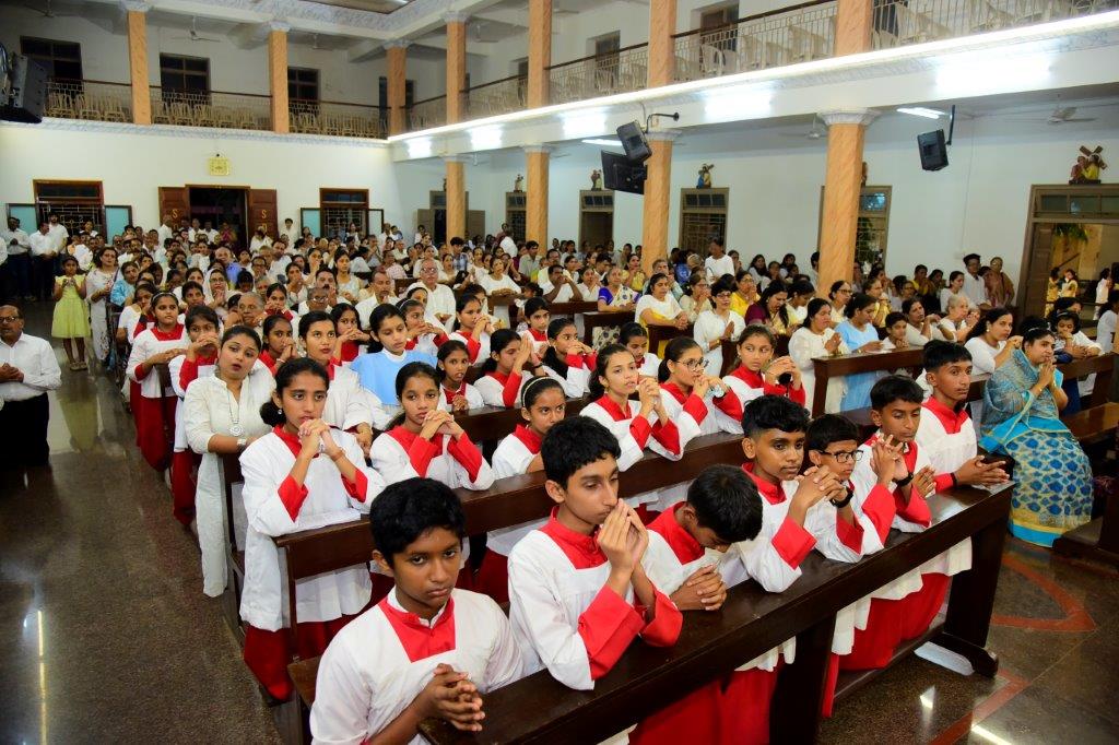 St. Dominic Church community celebrated the Holy Eucharist with the commemoration of Jesus washing the feet of his apostles and his Last supper of with them. Fr. Daniel Veigas, the Parish Priest celebrated the Eucharist and preached the homily, and washed the feet of twelve people, men and women from the parish. The parish community in turn as per wards gathered in the Church to pray until midnight.