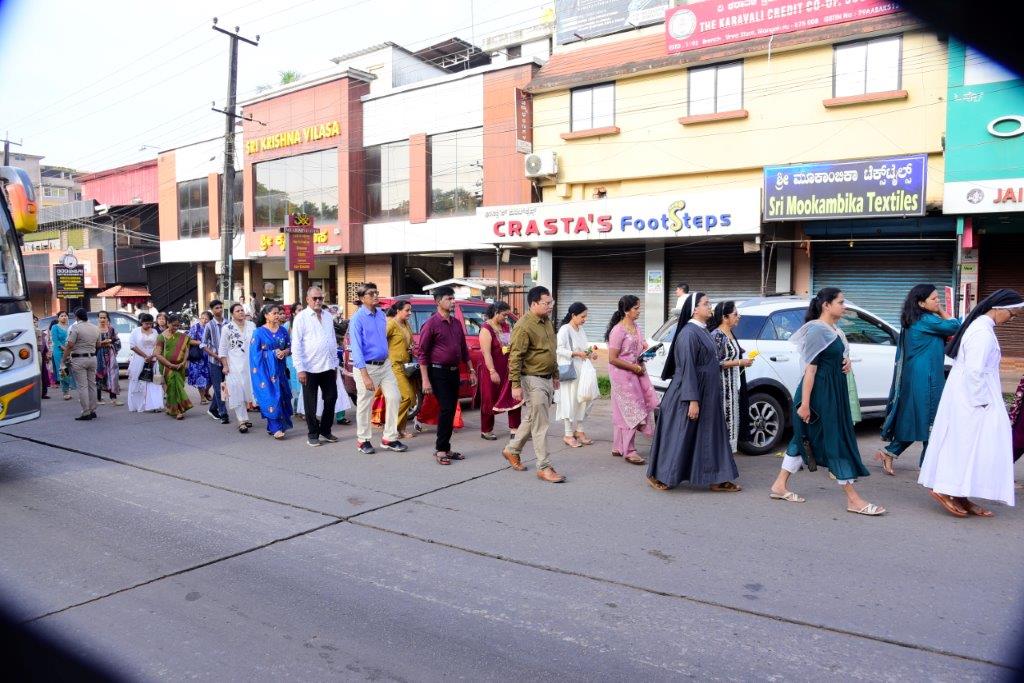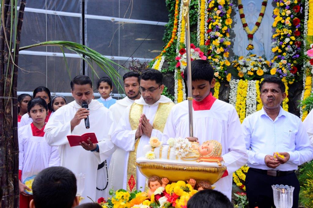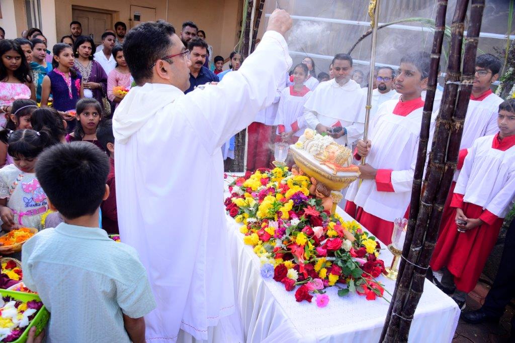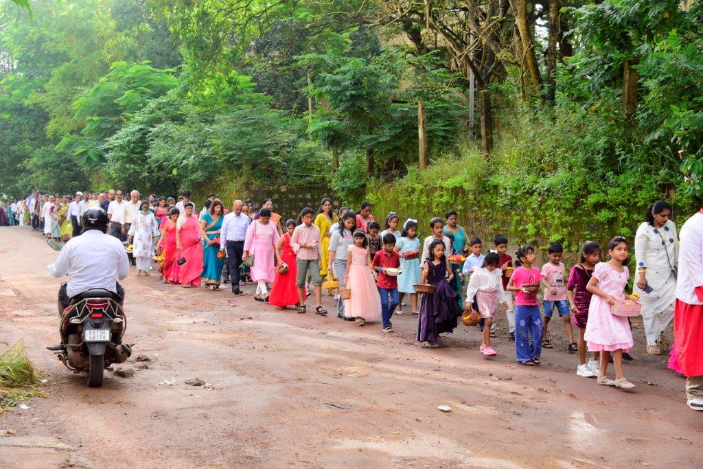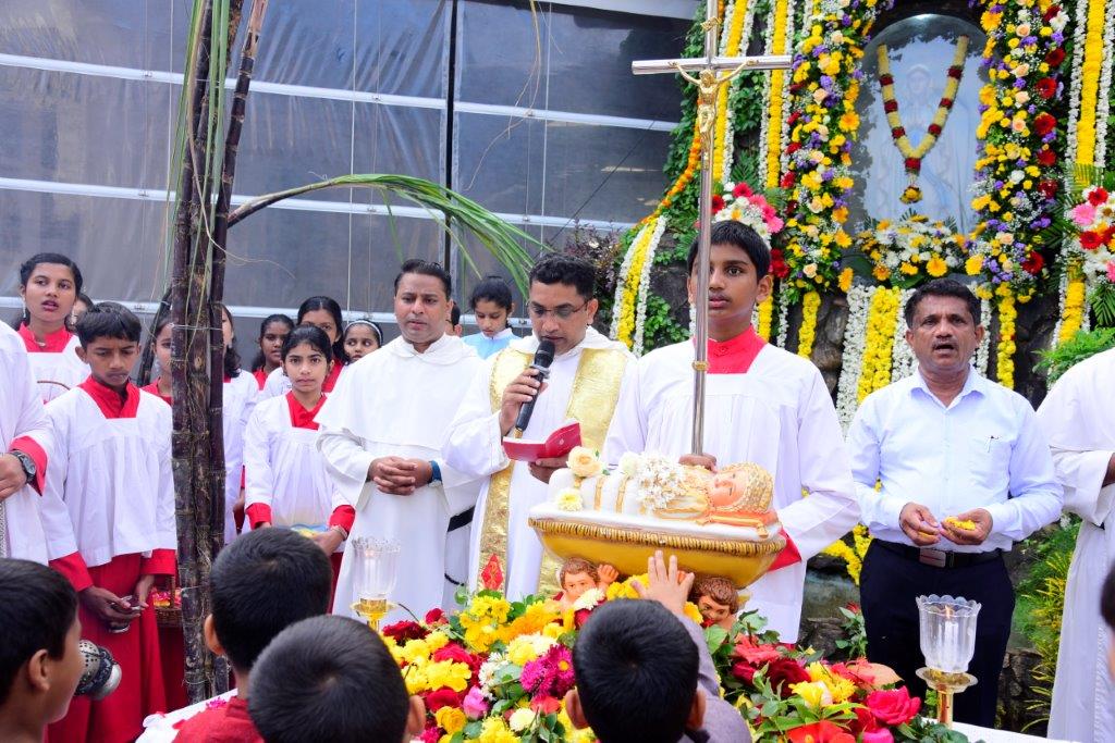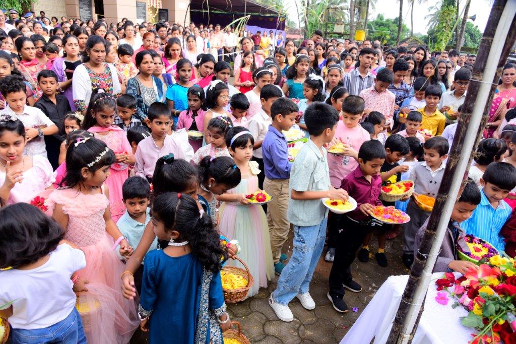 On the Feast day, the Parish Community gathered at Urwa Stores and in spiritual procession march towards the Church, carrying with them flowers, new paddy sheaves, first crops of vegetables etc. to be offered to God as thanksgiving for the blessings received. Rev. Fr. Daniel Veigas, the Parish Priest celebrated the Holy Eucharist along with concelebrant priests and faithful. The parish community shared the joy of this day by having payasam, sugarcane, and cake for all. On Novena days sweets were given to all those who attended the prayers. We thank our generous donors.