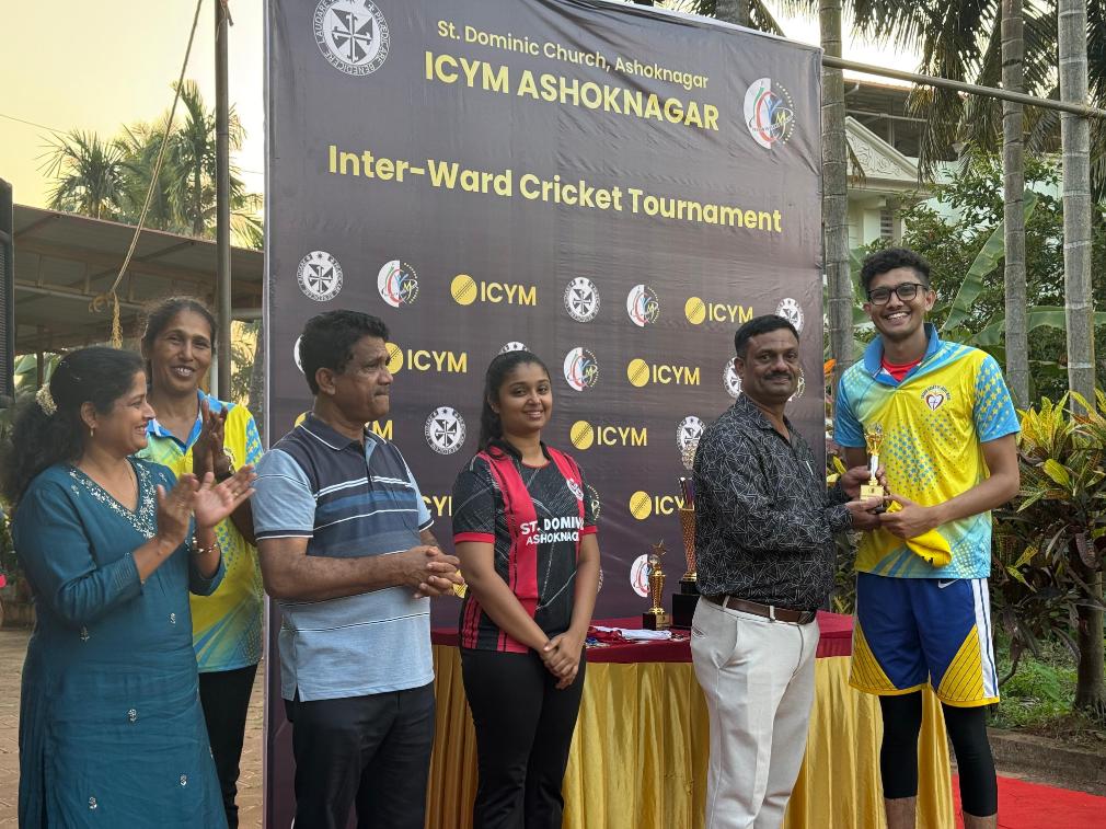 The ICYM St Dominic Church Ashoknagar Unit successfully organised the Inter-Ward Cricket Tournament on 1 February 2026 at the Church Ground of St. Dominic Church, Ashoknagar. The event commenced with the inauguration ceremony of the cricket match in the gracious presence of the Spiritual Director, Rev. Fr. Daniel. The programme was also honoured by the Assistant Parish Priest Fr. Meckenzie Mendonsa, the Parish Council Vice President, Mr. Isaac Furtado; the Ex Vice President Mr Maxim Crasta; Secretary, Ms. Meera Mendonca; Coordinator of 21 Associations, Mr. Flavy Shanthi Lobo; ICYM Animator, Dr Theresa Nunes; and Vice President, Mr. Melroy D’Souza. The programme began with a prayer song, invoking God’s blessings for the success of the tournament. A speech was delivered by the Vice President, Mr. Melroy D’Souza, who encouraged the participants to play with unity, discipline, and true sportsmanship.