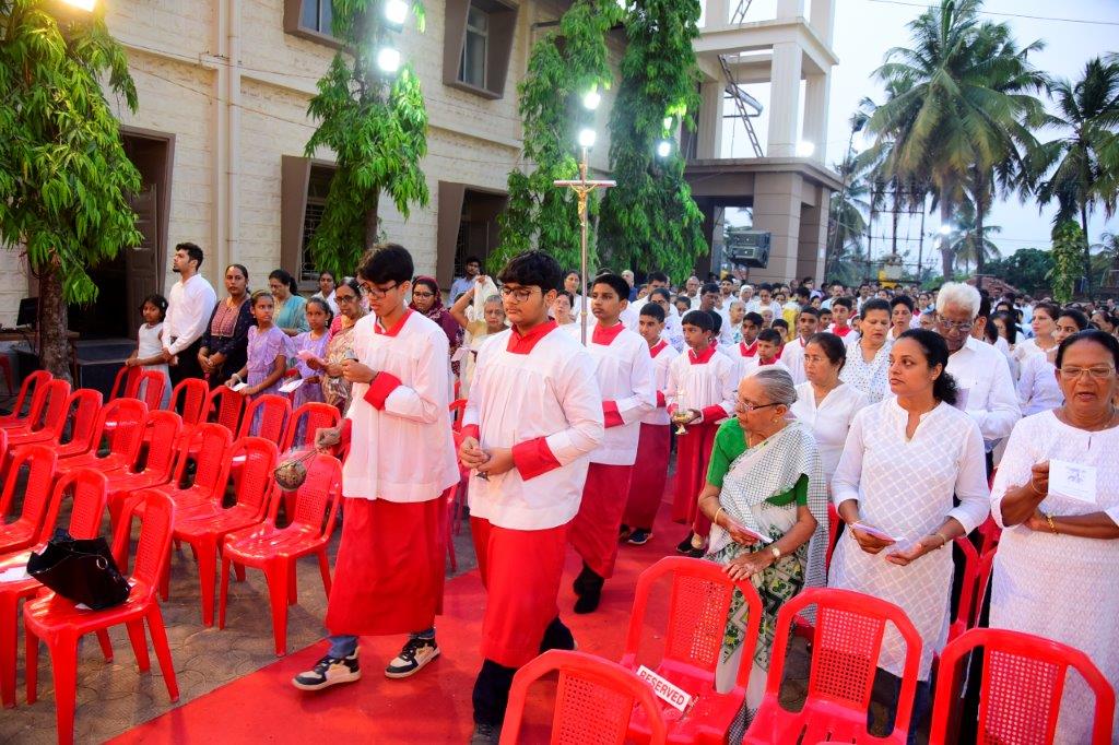 St. Dominic Church community celebrated the Holy Eucharist with the commemoration of Jesus washing the feet of his apostles and his Last supper of with them. Fr. Daniel Veigas, the Parish Priest celebrated the Eucharist and preached the homily, and washed the feet of twelve people, men and women from the parish. The parish community in turn as per wards gathered in the Church to pray until midnight.